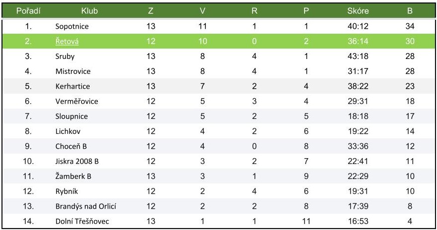 Řetová 13:2 (6:2) Dolní Třešňovec