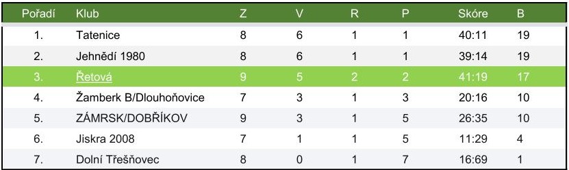 Tabulka soutěže - Dorost